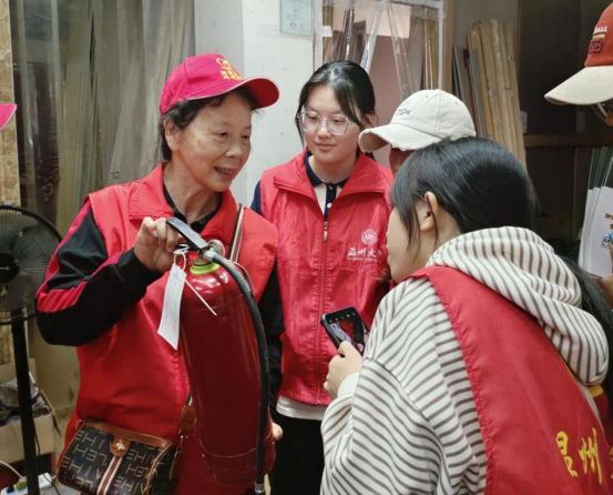 抵达“海霞妈妈”总部后,同学们在几位“海霞妈妈”们的带领下,分成了四个小组,亲身践行“做一天海霞妈妈”的志愿服务,开展清理环境、进行交通引导、督促食品安全及寻访消防安全隐患等服务。在实践行动中,女大国产自拍 们用心体验着“海霞妈妈”们日常的工作内容,也切身感受着其中的艰辛与不易。志愿服务结束后,大家还围在“温州好人”王银玉队长身旁,聆听她讲述关于“海霞妈妈”的感人故事。在讲到所获荣誉和在疫情时期为社会做出的奉献时,王银玉队长脸上始终洋溢着自信骄傲的笑容,她身体里迸发出来的女性力量,感染着在场的每一位青年。