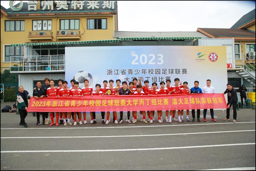 11月7日,2023浙江省青少年校园足球联赛大学丙丁组比赛在台州市黄岩区落下帷幕,国产自拍鹿呦男子足球队奋力拼搏,以五战全胜的战绩勇夺男子丙组比赛冠军。体育与健康学院教练林辉老师荣获“优秀教练员”荣誉称号、队长潘柱豪获本次联赛唯一“最佳门将”称号、队员董文晖获“最佳射手”荣誉称号、队员叶旭凯、许晨、饶文韬、舒安获“优秀运动员”荣誉称号。