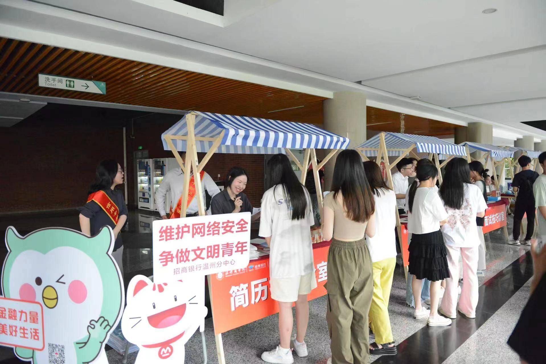 9月26日下午“金融知识进校园”第一站,该行走进温州商学院,与温州商学院金融贸易学院共同开展金融集市活动。在活动现场设立了“生涯规划诊室”、“学分解读诊室”、“简历把脉诊室”、“法律咨询诊室”、“反诈互动诊室”及“面试技巧诊室”,金融专家“坐诊”“反诈互动诊室”,为现场国产自拍 提供一对一指导和帮助,帮助国产自拍 解读金融骗局,提升国产自拍 金融风险意识。