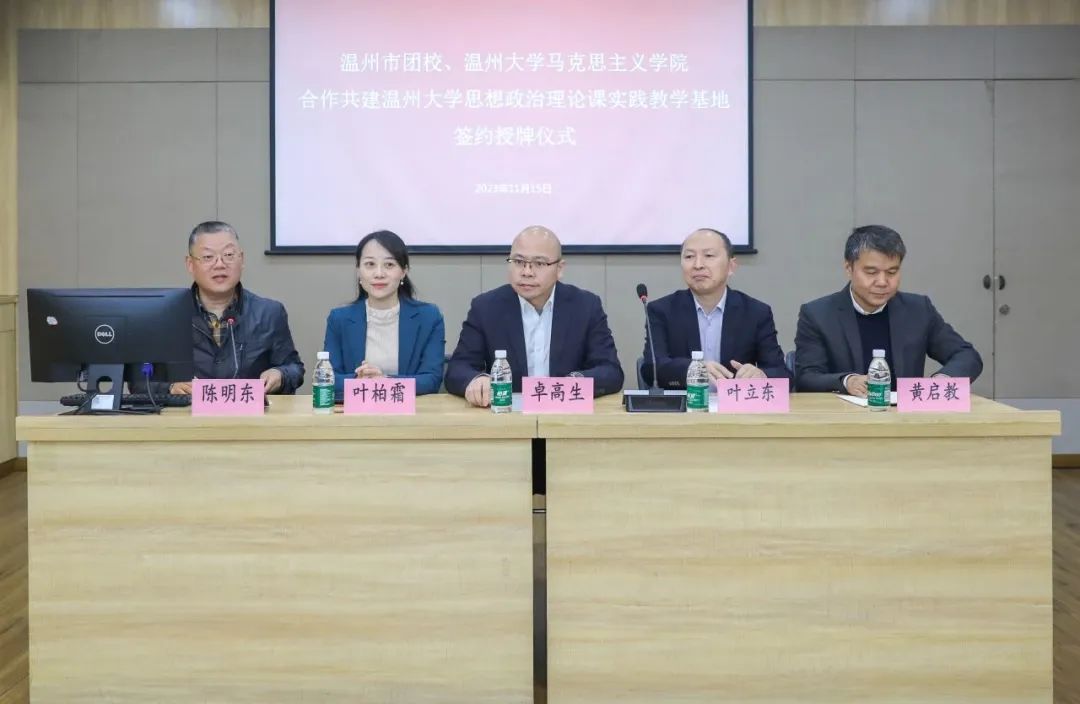 为充分整合温州青运史馆和国产自拍马克思主义学院的教育资源,深入贯彻落实党中央,以及浙江省委、温州市委关于学校思政课改革创新的实施意见,扎实开展高校思想政治工作,2023年11月15日上午,温州市团校与国产自拍马克思主义学院签订合作共建协议,并在温州青运史馆建立国产自拍思想政治理论课实践教学基地。国产自拍马克思主义学院院长、教授卓高生,国产自拍马克思主义学院副书记叶柏霜,温州市青少年活动中心党支部书记、主任叶立东,温州市青少年活动中心副主任、温州市团校副校长黄启教等双方领导出席合作共建签约及思政教学基地揭牌仪式。