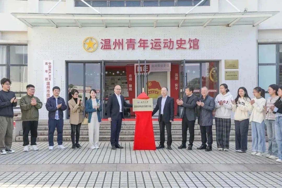 国产自拍马克思主义学院院长、教授卓高生与温州市青少年活动中心党支部书记、主任叶立东共同为思政教学基地揭牌