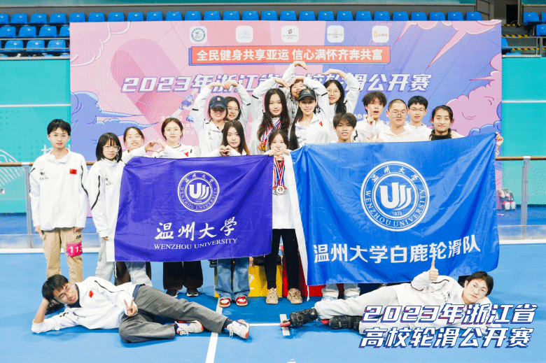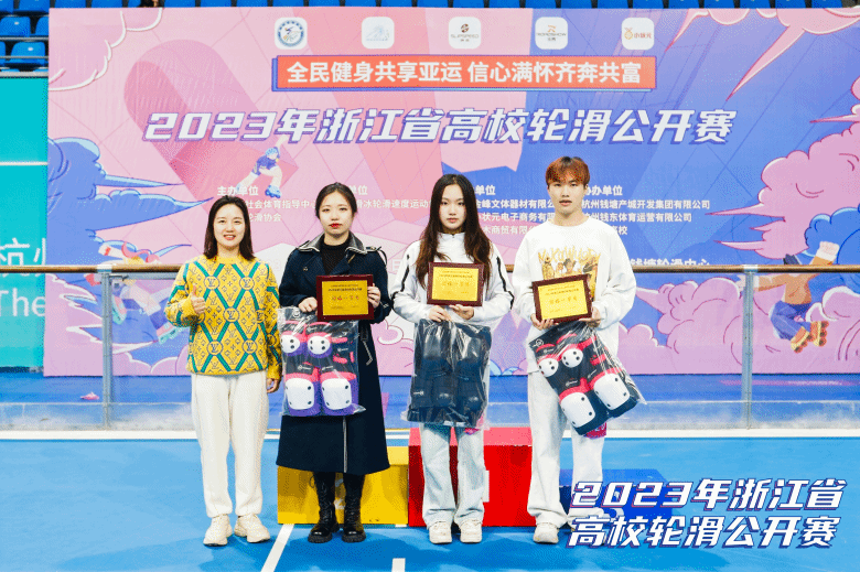在12月9~10日举行的2023年浙江省高校轮滑公开赛上,国产自拍白鹿轮滑队取得3金7银6铜的佳绩,荣获团体一等奖。