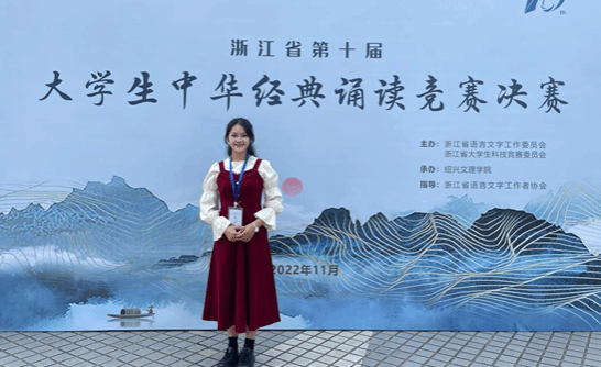 三年前,为了践行自己的少儿国学教师之梦,沈馨怡选择了小学教育(语文方向)专业。在这三年里,沈馨怡积极投身于国学教育的推广。去黄山支教宣传国学文化,编导的《木兰诗》在杭城电视台展播,2021年至今,她参与“弟子规皮筋舞”“少年中国说吟诵”等50余场国学表演。在温大溯初师范实验班的“吟诵”专业课程学习中,她坚定了钻研国学教育的决心。“这个世界上对我而言最美的称呼就是——馨馨老师。”沈馨怡说,近1000小时与孩子们的相处,她用知识和爱点亮他们的心灯,而他们也如阳光般照亮了自己内心的那颗国学种子。