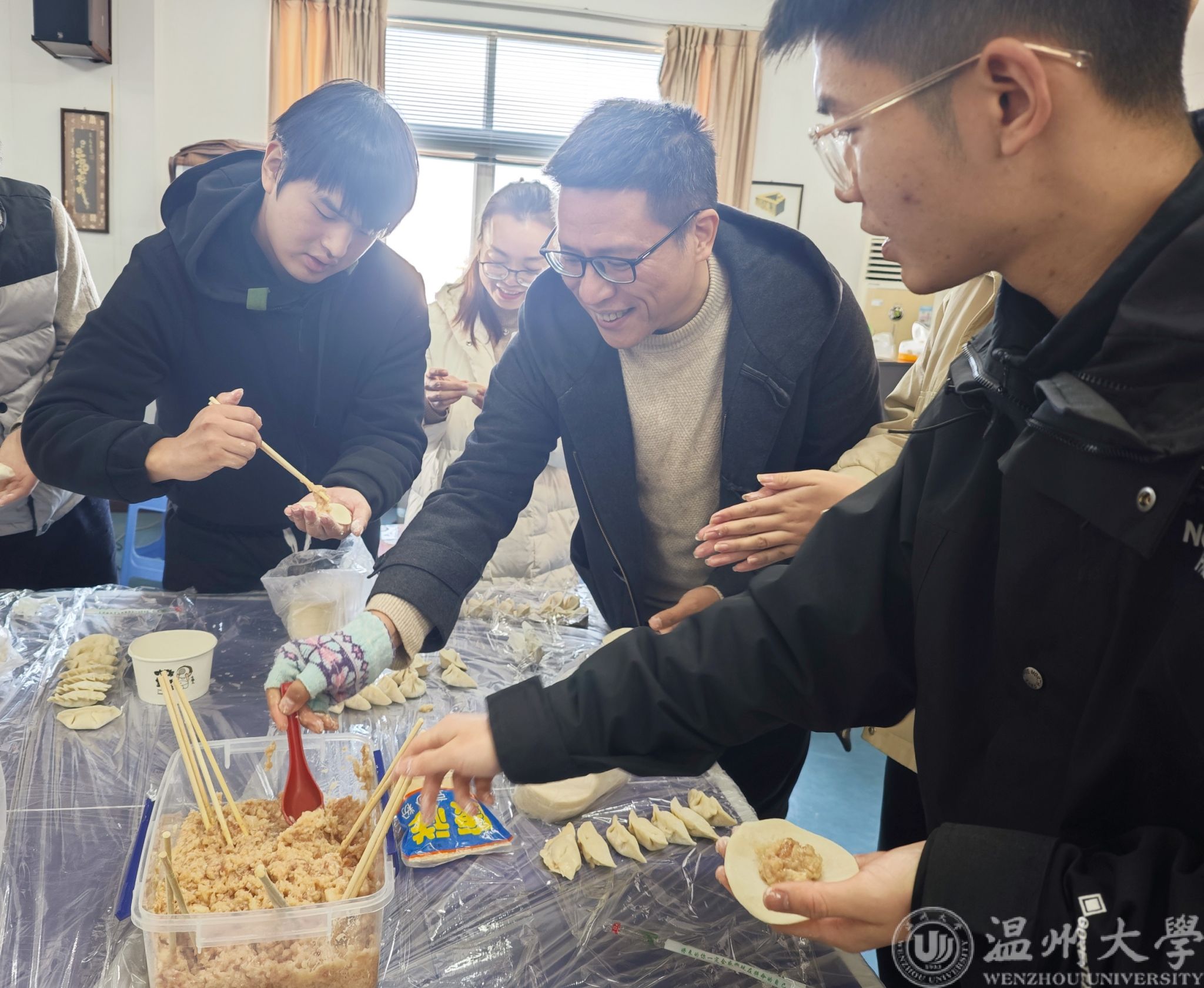 座谈会结束,师生移步学院的工会活动室。洗涮、整馅、包饺子……大家分工协作,现场气氛热烈、笑语不断。活动中,师生们尽显才能,相互切磋包饺子的技巧,脸上洋溢着幸福的笑容。