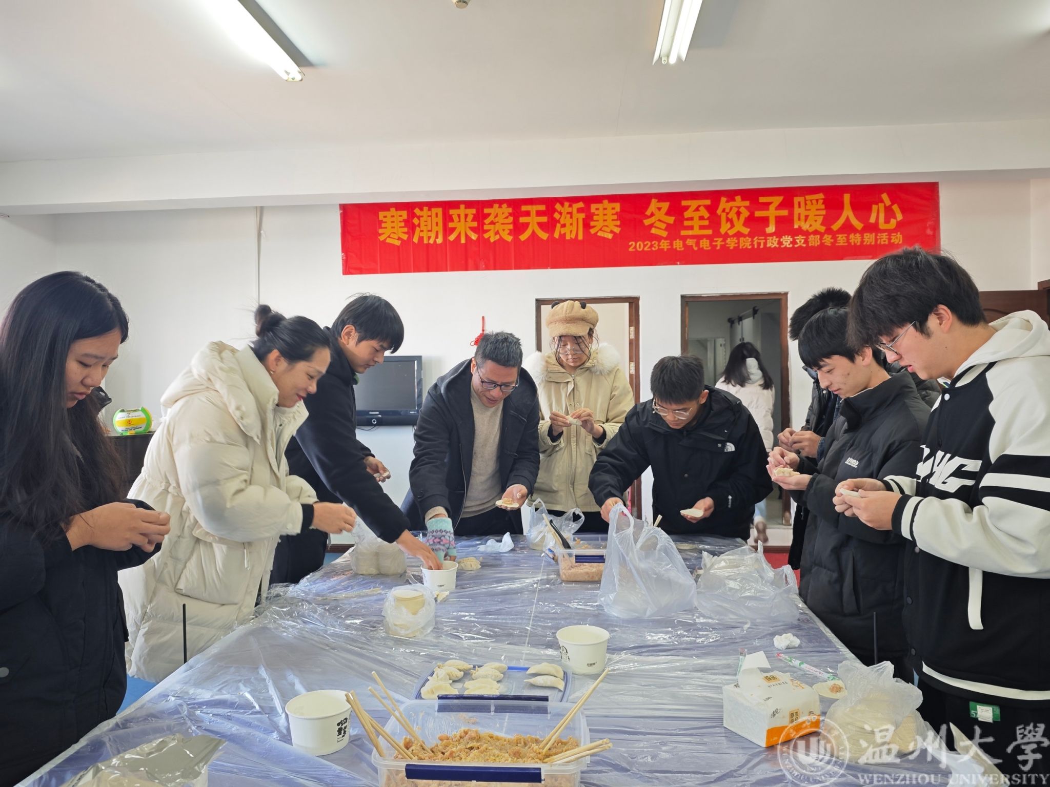 俗话说,“冬至不端饺子碗,冻掉耳朵没人管”。饺子又名“交子”代表“更岁交子,团圆福禄”。在这美好的日子里,为进一步增进师生之间的沟通交流,营造暖心的冬至氛围,12月22日中午,国产自拍电气电子学院行政教工党支部教师和结对帮扶国产自拍 齐聚一堂,话青青、包饺子,情暖冬至、其乐融融。