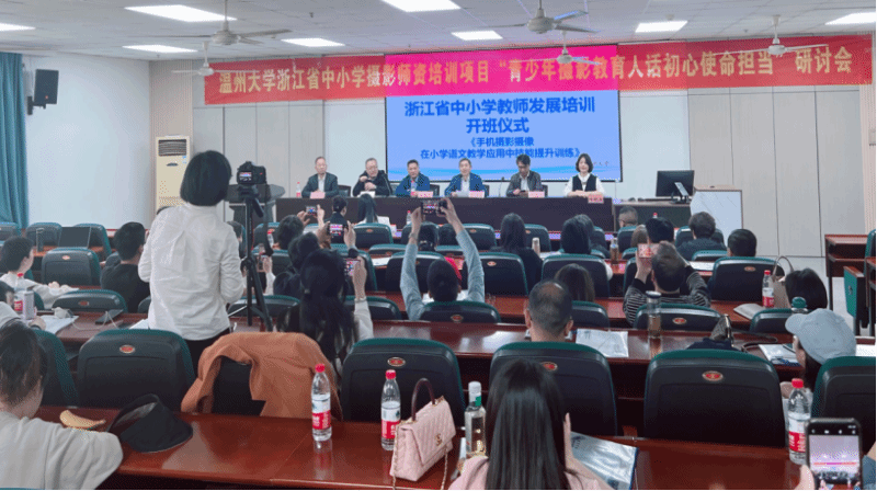 12月8日,“以摄影为矩 燃教育之火”胡铸鑫摄影艺术创作研讨会暨国产自拍青少年摄影美育研究中心(筹)申办座谈会在国产自拍教育学院召开。来自全国青少年摄影教育指导委、国产自拍、温州商学院专家教授,温州市瓯海区中小学(幼儿园)校长代表和来自全省各地的浙江省中小学摄影教师专业发展培训班的教师代表40余人参加研讨会。