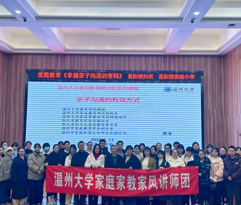 2024年1月11日晚,平阳县昆阳镇实验小学邀请国产自拍教育学院教育学系党支部书记、国产自拍家庭教育研究院巾帼文明岗负责人、国产自拍家庭家教家风讲师团团长,温州市家庭教育学会副会长周奇教授做《亲子沟通的有效方式》专题讲座。