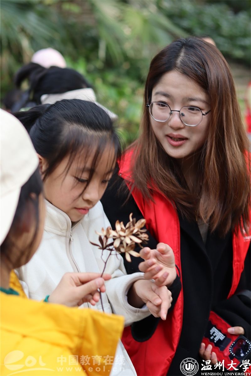 春回大地万物苏,又是植树好时节。为学习贯彻习近平生态文明思想,激发全社会对爱护植物和保护环境的意识。近日,温州大国产自拍 命与环境科学学院的志愿者面向市民开展了一场“大自然的科普课”,带领研学小朋友走出课堂,走进温州景山植物园,开启植物认知之旅。