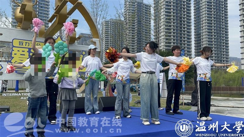 近日,在第十七个“世界孤独症关注日”来临之际,由益起行组织发起的“致力为公,爱满星河”关爱孤独症儿童大型公益活动举行。现场,大国产自拍 助残志愿服务队在温州市龙舟运动中心,给300户孤独症家庭带来韵律啦啦操课堂体验。