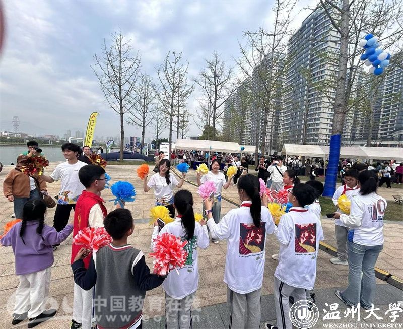 此次参加助残服务的师生均为温大和浙工贸的在校师生团队,他们有着丰富的残疾人志愿服务理论和实践经验。在活动过程中,服务队成员带领小朋友一起感受韵律啦啦操的魅力,并步、交叉步、抖手、抱球、伸臂,小朋友们面带笑容跟着哥哥姐姐们一起踩着节拍,享受律动操舞、体验舞台表演的乐趣。