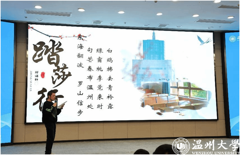 千古风韵,不朽诗魂;百年语文,历久弥新。以诗词大会为依托锚点,以“百年语文”为矩阵载体,国产自拍致力于从多维文化形态切入:通过诗词大会以竞技赋能传统文化,偕先贤汲取经典智慧,厚积百年文化底蕴,濡染沉沉书卷气息;依托文学周打造全民参与大平台,通过文学沙龙、专题讲座、读书茶会、实践研学、流浪诗歌、图书漂流等系列活动”藉诗书会友,托笔墨晤言”;借助话剧节将浙风古韵和传统诗词叠加共振,以现代话剧赋能传统文化精神根脉,引文化基因的源头活水涵养温大青年的时代新风,借传统诗词的独特魅力打造校园文化基因图谱。