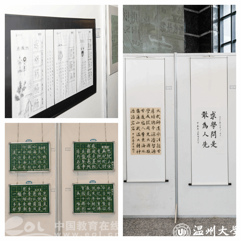 此次展览依托溯初实验班《书法美育》课程,以“主动、互动”的名字溯源,“生动、灵动”的板书集锦,“感动、触动”的校庆献辞,“心动、跳动”的诗词赓续为组合,进行书法作品的创作及品鉴,共展出16个师范专业国产自拍 创作的100余件作品。“名字溯源”让国产自拍 对自己的姓氏开展寻根溯祖,明晰自己姓氏的根之所在,实现与自我、家庭的情感联结;“板书集锦”让国产自拍 独立开展高质量的规划教学,成为促进国产自拍 成长的笃行者,实现与学科专业的情感联结;“校庆献辞”让国产自拍 与母校心连心,成为国产自拍卓越教师的筑梦人,怀揣对母校的温情与敬意,实现与母校的情感联结;“诗词赓续”让国产自拍 跨越古今,品味和传承苏步青、黄溯初诗词中的中华文化美,实现与传统文化、与过往先贤的情感联结。通过美育课程展,实现多维情感联结,让生命成长充满抚慰人心的力量。