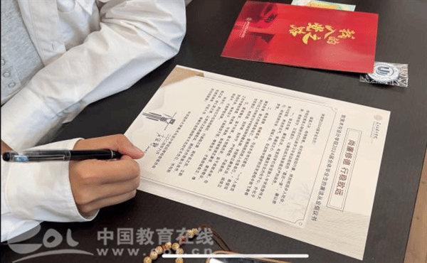 信诺不渝,廉保初心。美术学院还组织全体毕业生党员现场签订了《廉洁从业承诺书》。通过庄重而神圣的仪式,警醒毕业生党员要带头牢记“廉洁从业”理念,弘扬“勤俭促廉”传统、培树“崇廉守洁”之风。“感谢学院的本次廉洁教育活动,我也会努力将所得所思转化为实际行动,自觉增强廉洁意识,增强纪律和法制观念,踏踏实实做好自己的本职工作!”毕业生党员严瑄琦说。
