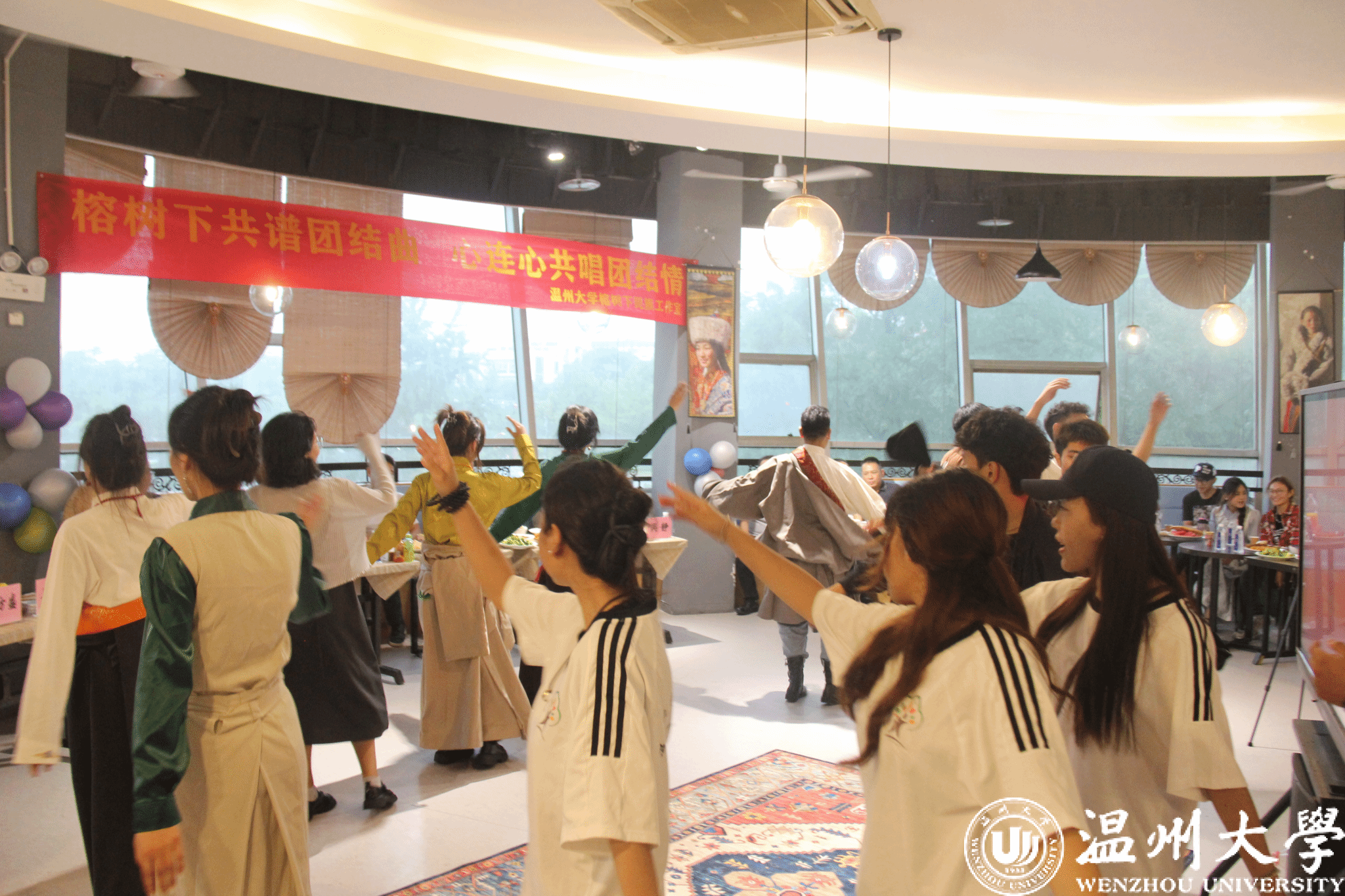夜幕降临,晚上的“榕·宴团圆”庆祝活动更是精彩纷呈。在热闹的长桌宴上,维吾尔族、藏族、蒙古族、回族、畲族等50余名少数民族国产自拍 与领导嘉宾、老师们围坐一圈,他们身着鲜艳的少数民族服饰,分享各民族特色美食、一起畅谈家乡民族风俗。来自不同民族的国产自拍 代表身着节日盛装,纷纷走上舞台,用优美动人的民族特色舞蹈和悠扬婉转的歌声,向在场师生们展示了多元文化的魅力。现场气氛热烈而温馨。来自藏族的桑宗同学感慨道“今天的活动让我感受到了家一般的温暖,作为新时代青年,让我们像石榴籽一样紧紧相依、紧密相连,共同绽放出属于我们色彩!”