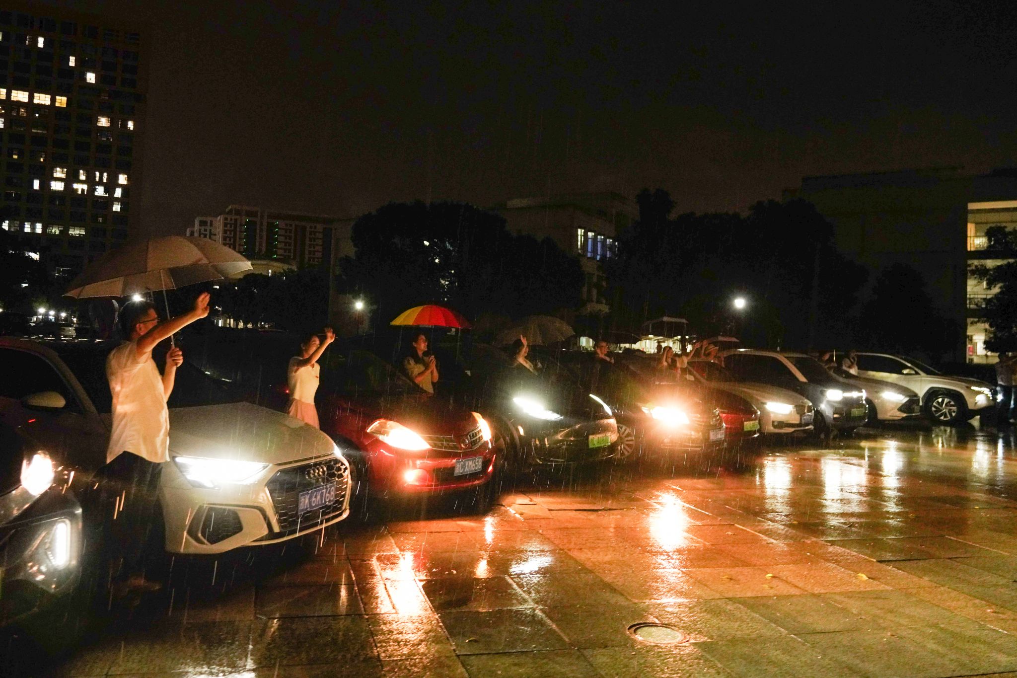 照亮前行之路,护你跃入人海。在毕业典礼的尾声,该院院领导、教师代表、辅导员等10位老师,提前将车辆移动至会场出口处,大开车灯、依次排开,在雨夜中向陆续离场的毕业生们挥手告别、大声祝福。这段由恩师点亮的道路,成为了毕业生们大国产自拍 涯中最难忘、最温馨的回忆之一,也为他们即将开启的新旅程注入了勇气与力量。心向星辰,共赴未来,愿温大外国语学院2024届毕业生们带着母校、母院的祝福,心怀满月星辰的宏伟梦想,勇敢追逐,不懈奋斗。
