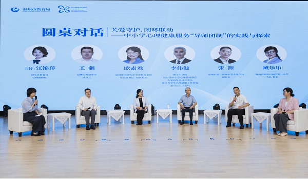 放假在家,怎么在校外进行心理咨询?校园心理求助应该去找谁?针对这些问题,温州市教育局推出温州市中小学心理健康服务“导师团制”,由学校主要负责人统一牵头,建立由校领导、党员干部、专职心理老师、优秀家长、医疗专家等组成的“校级+班级”导师团队。“导师团制”与乡镇(街道)“包联小组”共同构筑“校内+校外”协同合作闭环。圆桌对话环节,温州各校以《关爱守护,闭环联动——中小学心理健康服务“导师团制”的学校实践》为题分别介绍实践情况。