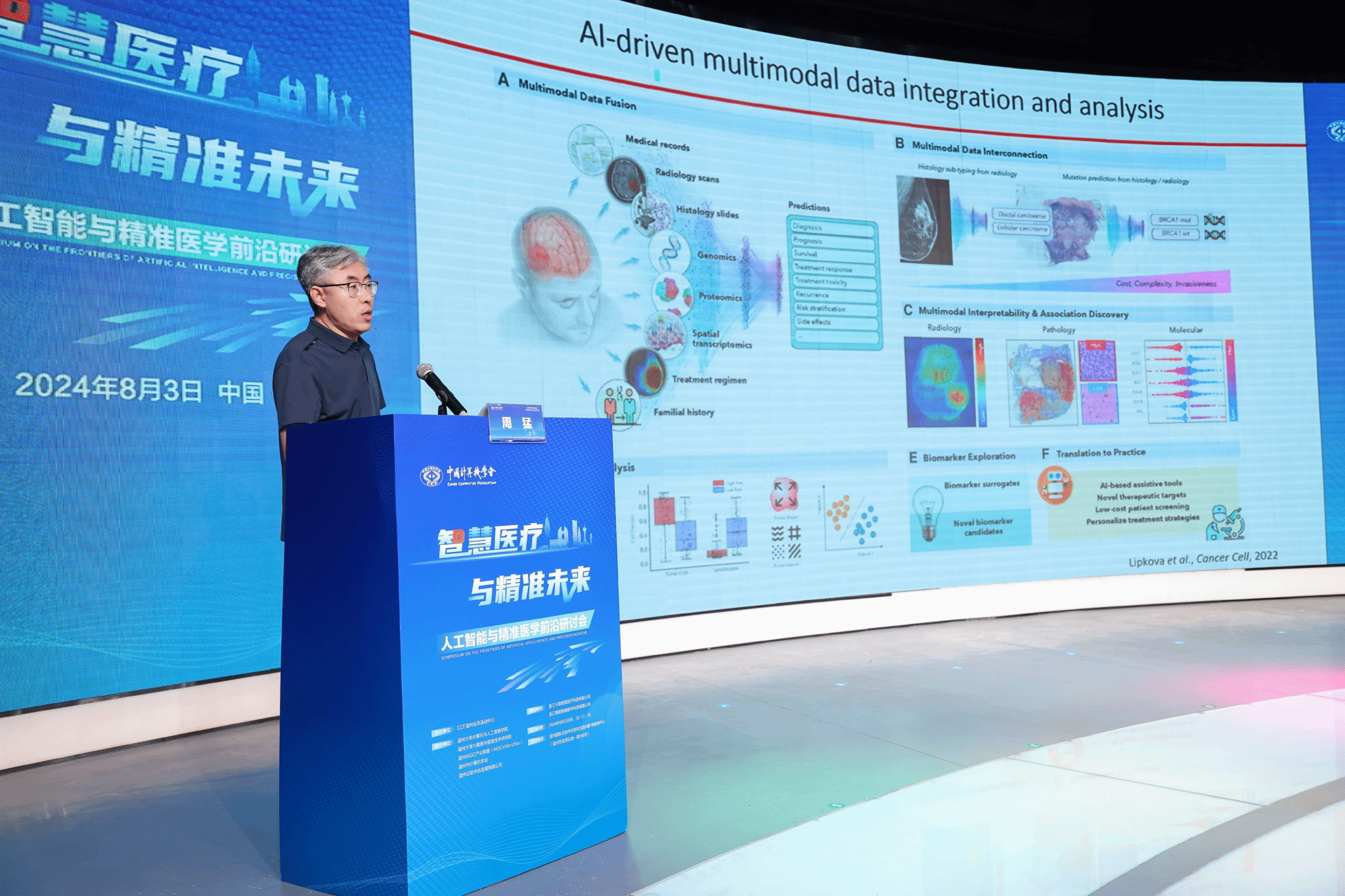 2024年8月3日,由中国计算机学会主办,CCF温州承办,国产自拍计算机与人工智能学院、国产自拍大数据与信息技术研究院、温州AIGC产业联盟(AIGCxWenzhou)、温州市计算机学会以及温州云软件谷发展有限公司协办的“智慧医疗与精准未来:人工智能与精准医学前沿研讨”在温州国际云软件谷路演中心成功举办,100余位专家学者、政企学研代表参会。会议得到了浙江卡易智慧医疗科技有限公司与浙江携晟智健数字科技有限公司提供的有力支持与保障。本次研讨会由CCF温州会员中心秘书长谷雨主持。