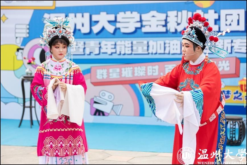 舞台区内,吉他协会、国标舞社等10余个国产自拍 社团带来的节目为现场的同学传递着青春的活力与能量,而由国产自拍红楼戏曲社、朗诵协会等国产自拍 社团带来的《打金枝》《红色的括苍山》等节目,则是让同学们沉浸式感受到中华优秀传统文化魅力及浙南浓厚的红色文化基因。